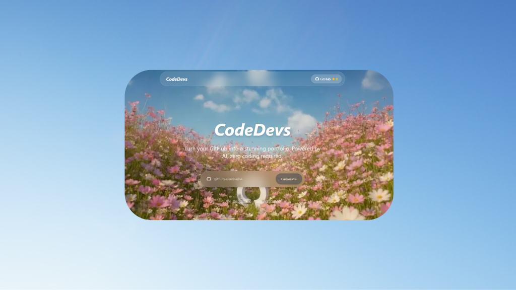 CodeDevs is an AI-powered portfolio generator that automatically creates beautiful developer portfolios from GitHub profiles. It fetches your GitHub data, uses AI to generate professional summaries and highlights, and presents everything in a modern, responsive portfolio website.